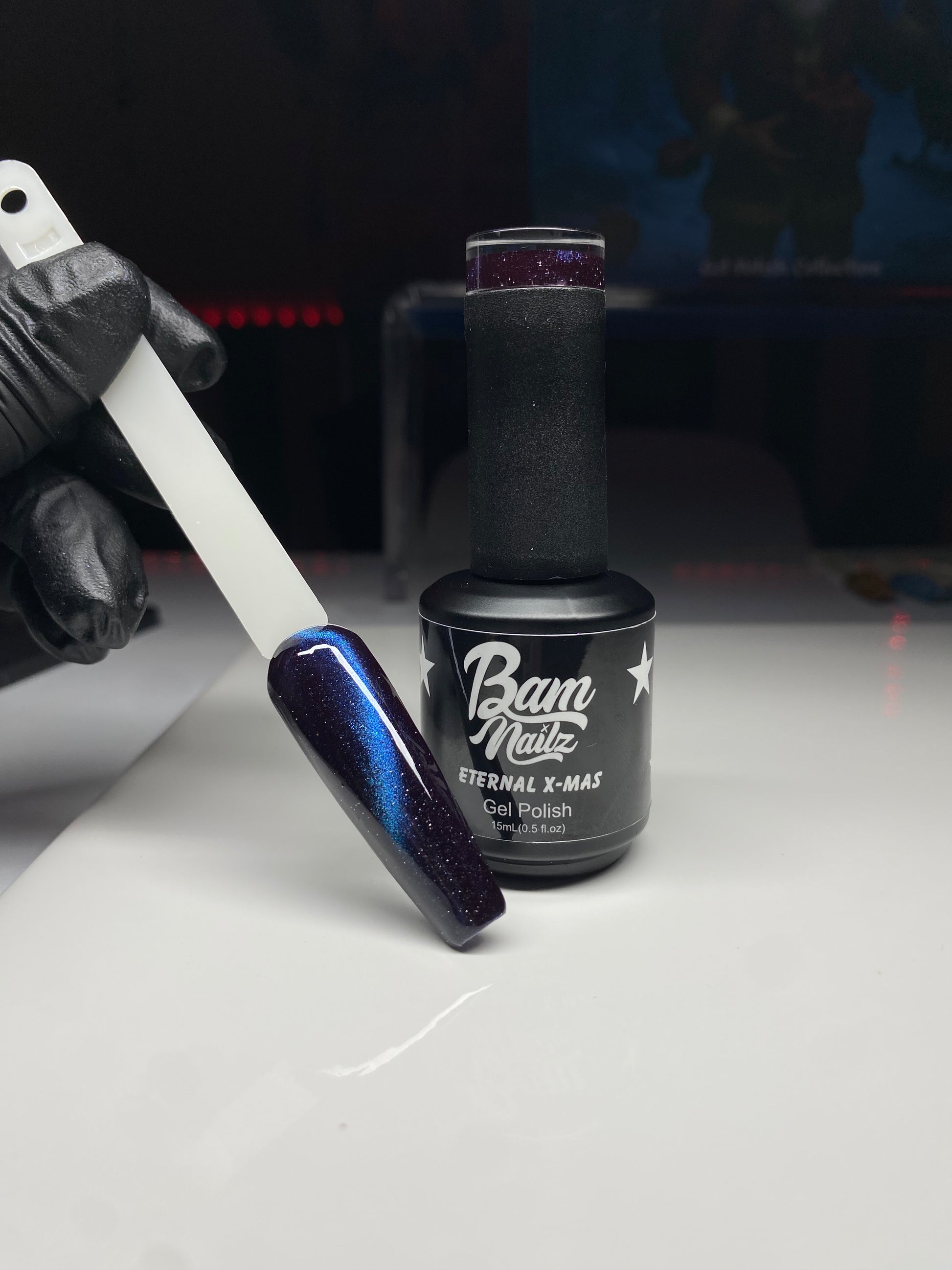 Experience the ultimate festive look with our "ETERNAL X-MAS" Cat Eye & Reflective nail polish. The deep blue color adds an enchanting touch to any outfit, while the reflective finish adds a playful and eye-catching element. Perfect for all your holiday celebrations!