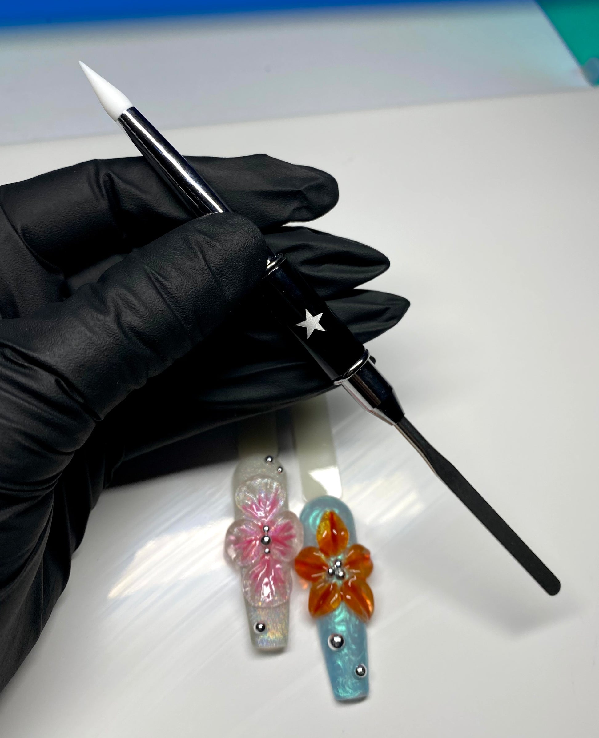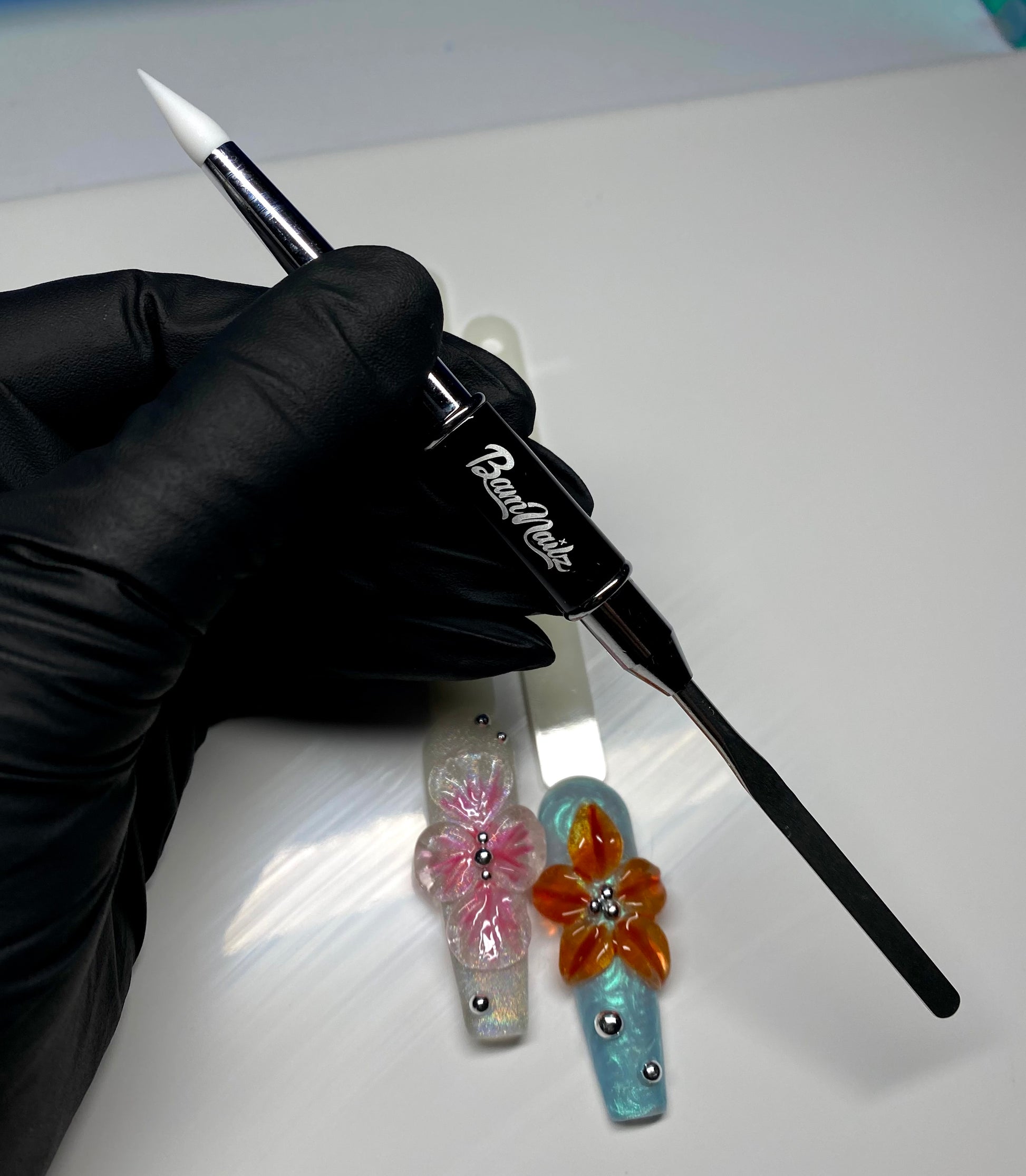 "Transform your nails into stunning works of art with our "3D BRUSH"! This innovative tool combines a silicon brush and spatula to effortlessly create intricate 3D designs. Get professional-level results at home and elevate your nail game to the next level. Express your creativity and stand out with our "3D BRUSH"!"