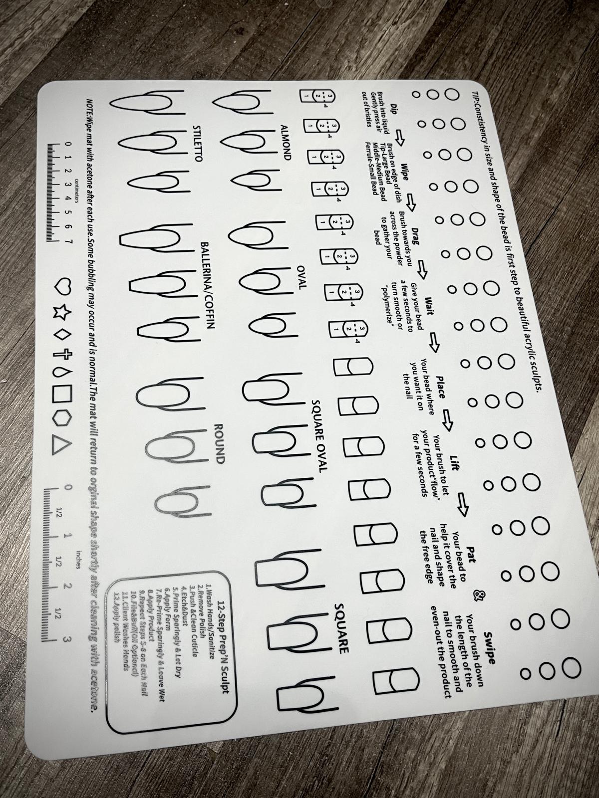 Ideal for beginners, the “ACRYLIC PRACTICE MATT” is a silicone mattress designed to make practicing acrylic application effortless. With easy clean-up after the acrylic dries, you can reuse it to perfect your brush handling and master various techniques. Instructions included for an enhanced learning experience.