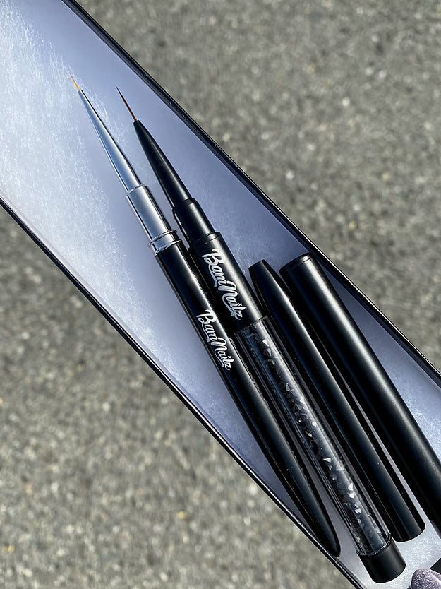 Unleash your inner artist with "BLACKEST" Brush duo! The "Micro Details Brush" set is perfect for intricate details and the "Badass Liner Brush" is a must-have for every nail design. Achieve the ultimate precision and flawless application with this dynamic duo. An ideal for everything must have duo! 🖤