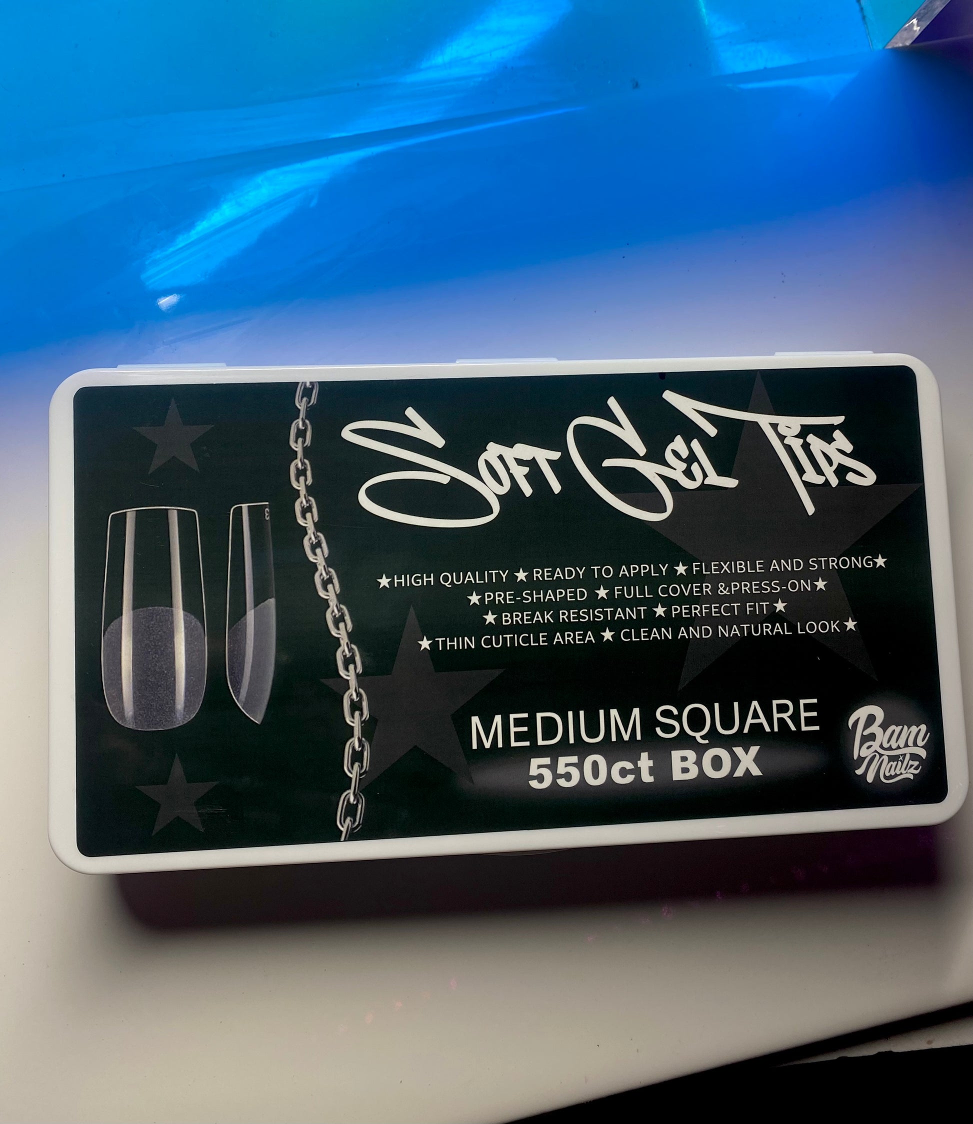 Introducing our "MEDIUM SQUARE" 550ct Gel Tips - the ultimate solution for achieving flawless and long-lasting manicures. Made with high-quality gel material, our gel tips provide 100% coverage and flexibility for a natural look. Say goodbye to chipping and lifting, and hello to beautiful nails with our gel tips.
