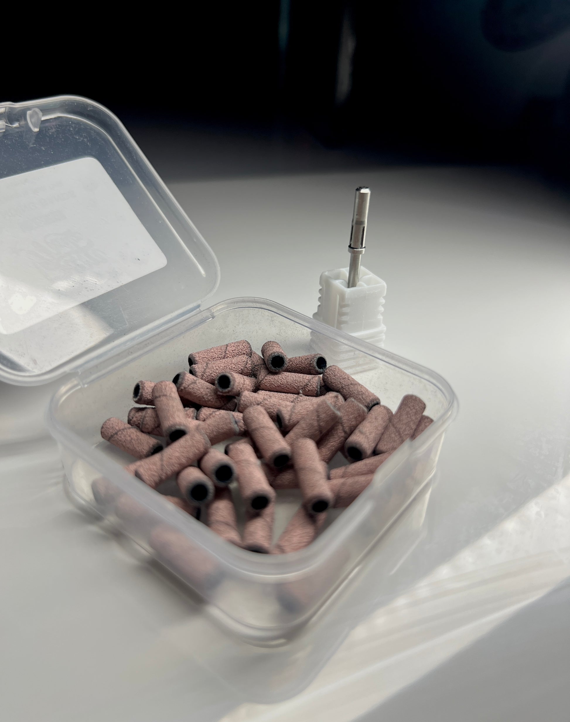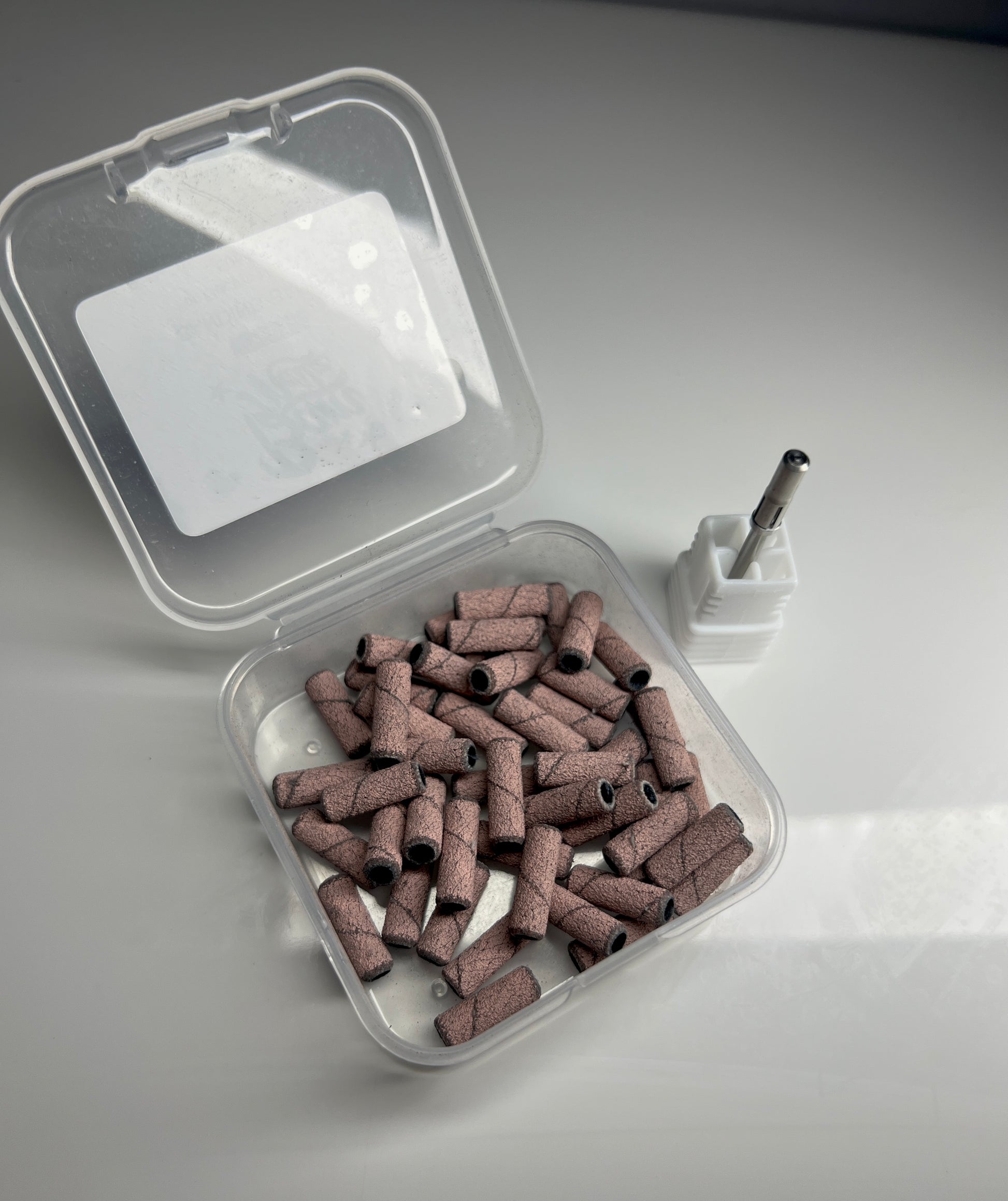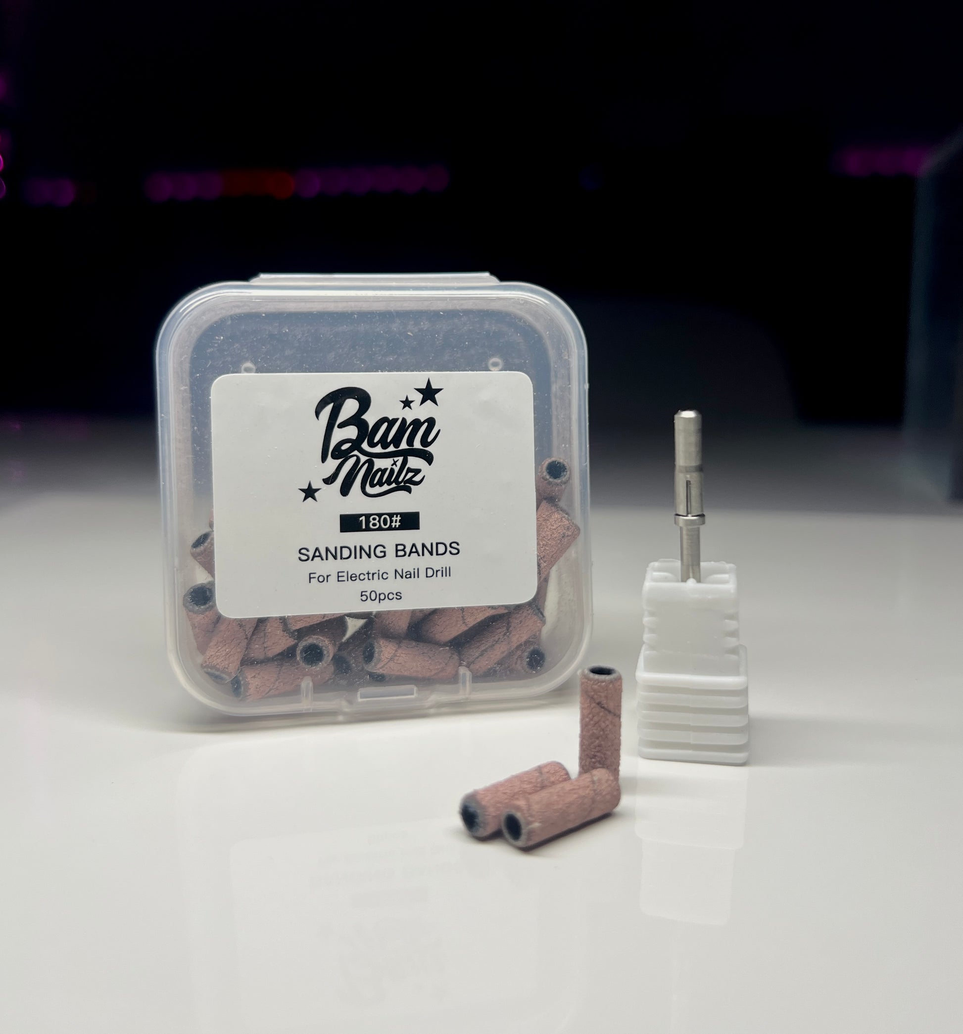Effortlessly clean and shape your cuticles with our "CUTICLE SANDING B."! The #180 sanding bands are made with precision and include a durable drill metal part for easy use. Perfect for professionals and at-home use alike.