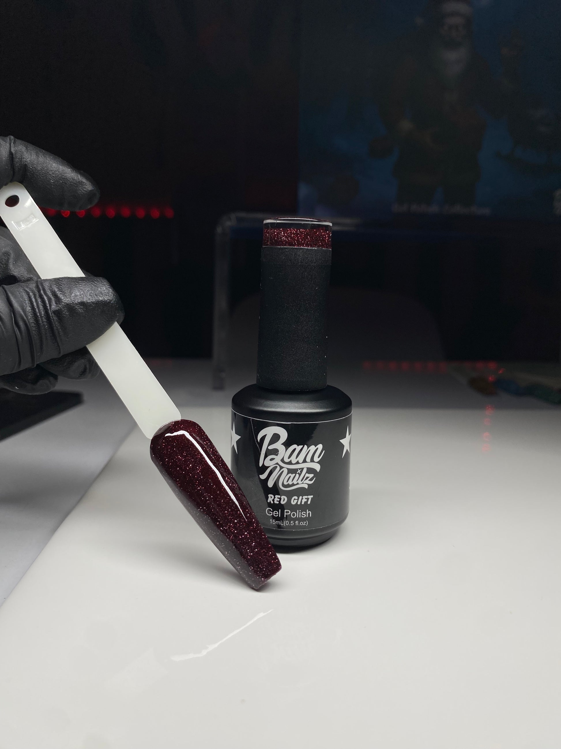 Enhance your look with “RED GIFT” Reflective! This deep dark red gel polish provides an elegant touch to your nails while also reflecting light for added brilliance. A must-have for any nail collection.