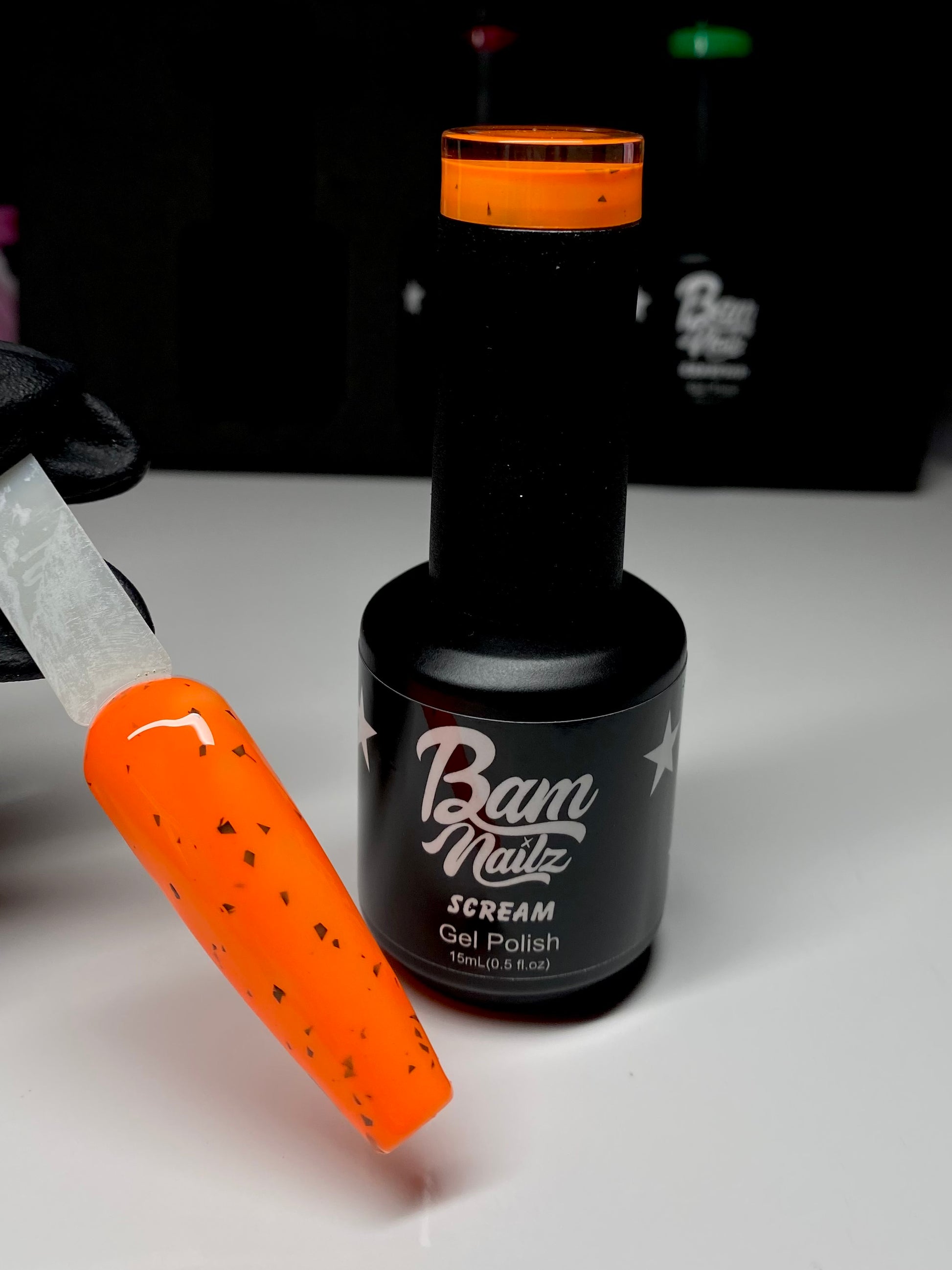 Transform your nails this Halloween with our "SCREAM" Gel Polish in a vibrant orange shade. This 15ml bottle is perfect for creating spooky and fun nail designs. Made with high-quality ingredients, it ensures long-lasting wear and a smooth, glossy finish. Bring out the festive spirit with our Halloween gel polish.