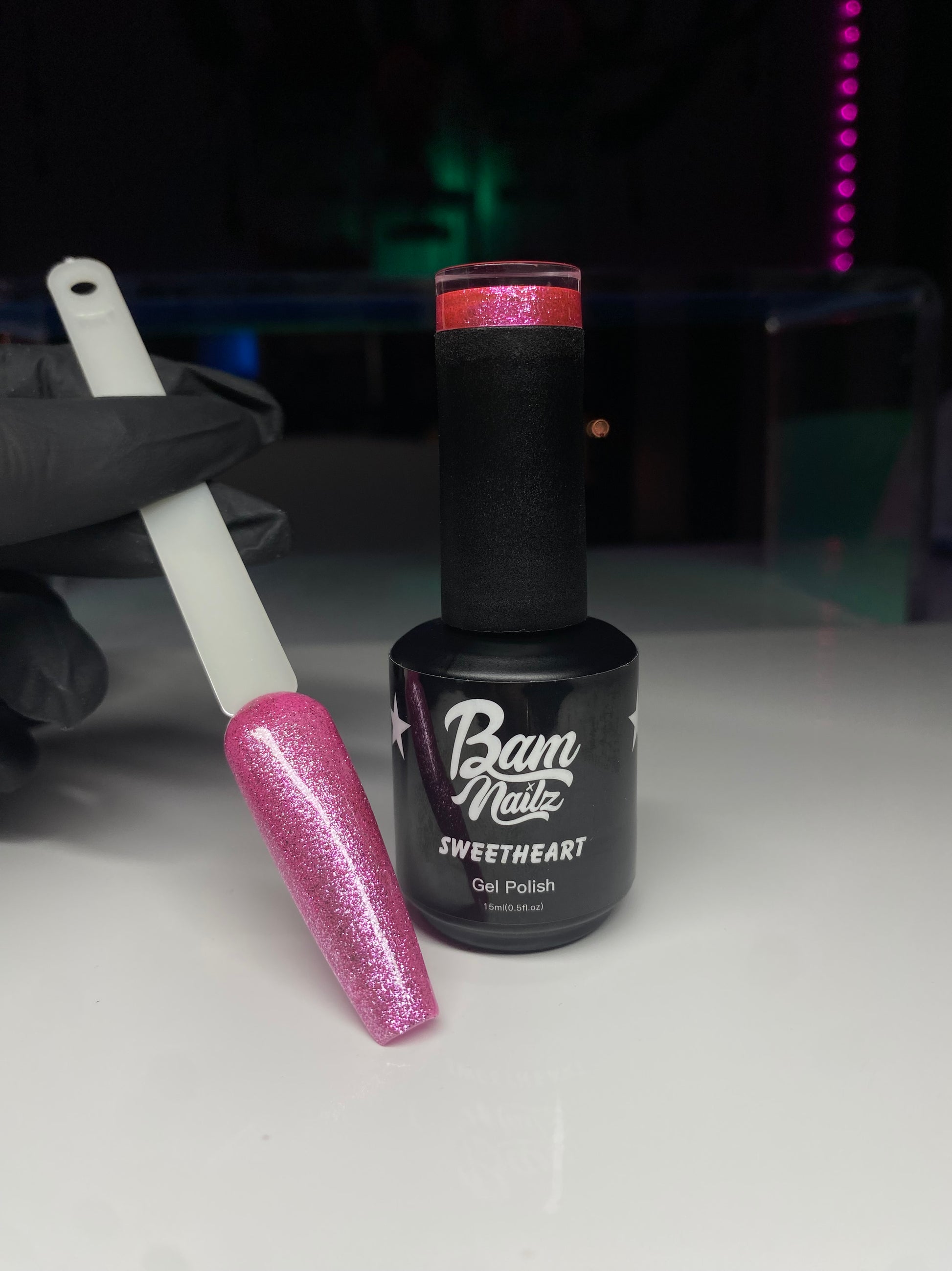 Experience a touch of glamour with our "SWEETHEART" Glitter Gel Polish. This stunning pink polish will add a touch of sparkle to your nails, perfect for any special occasion. Its long-lasting formula and vibrant color will make your nails stand out with a beautiful glittery finish.